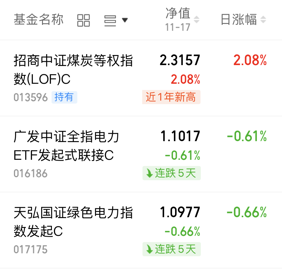 煤炭净值播报!