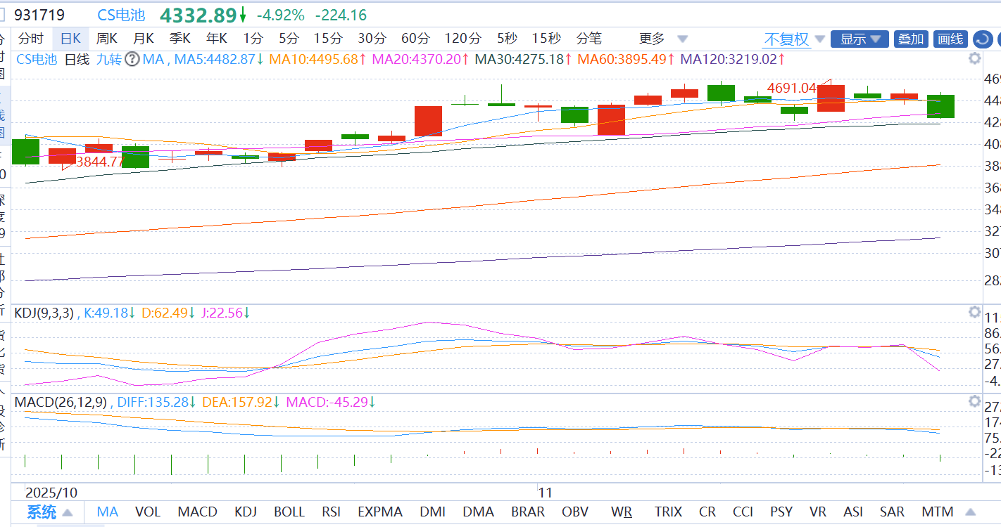 电池:麦爸认为今日电池板块领跌市场,部分龙头股接近支撑位。麦爸认为可以逢跌低吸做反弹。