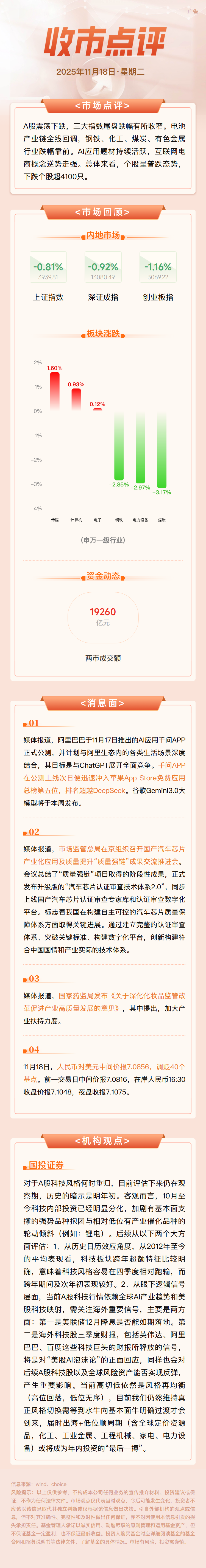 收市点评11.18 A股震荡下跌 AI应用概念全天强势