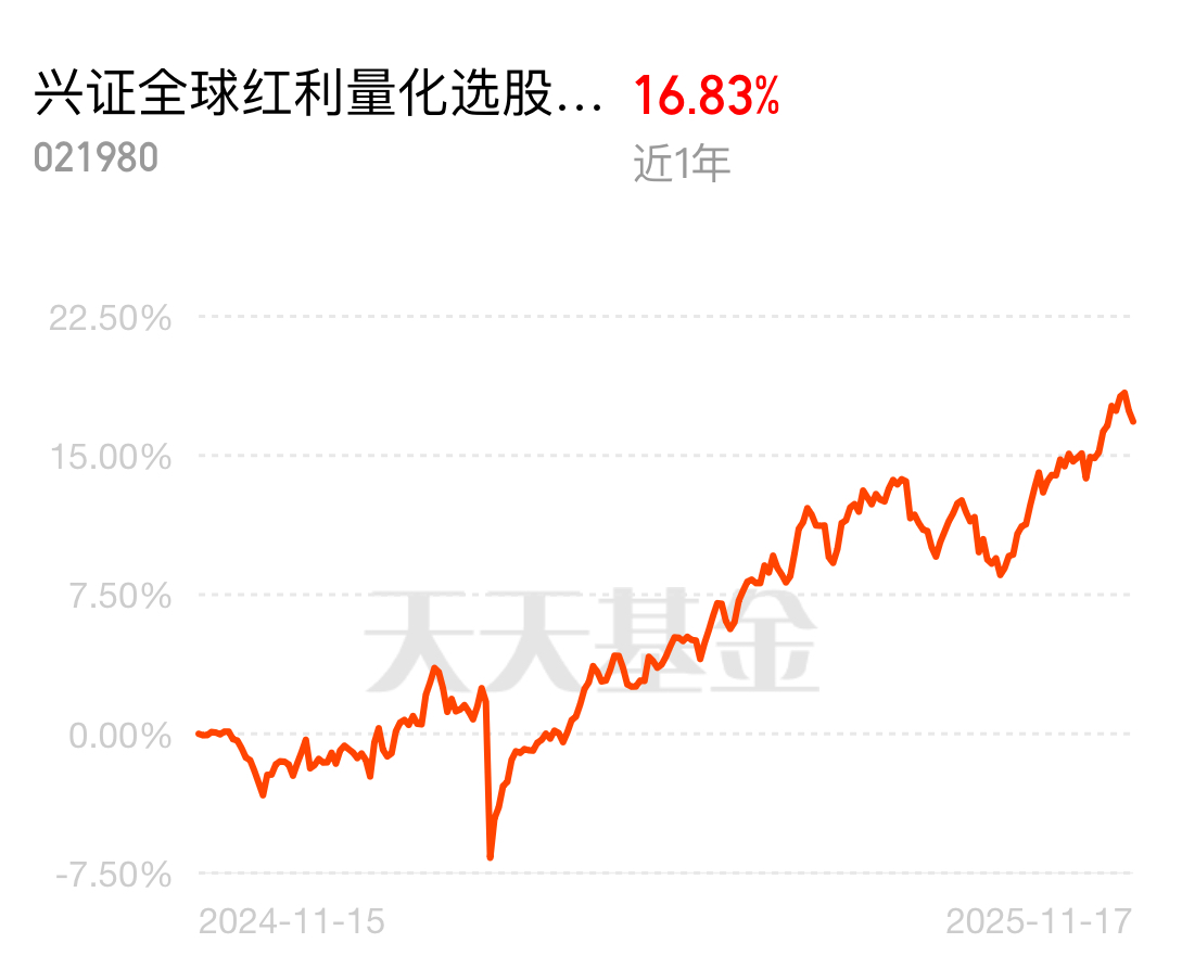 证全球红利量化 C 战绩能打!近一年涨 16.83%,覆盖银行、煤炭等行业,持仓分散 + 回撤稳,红利选手直接冲~