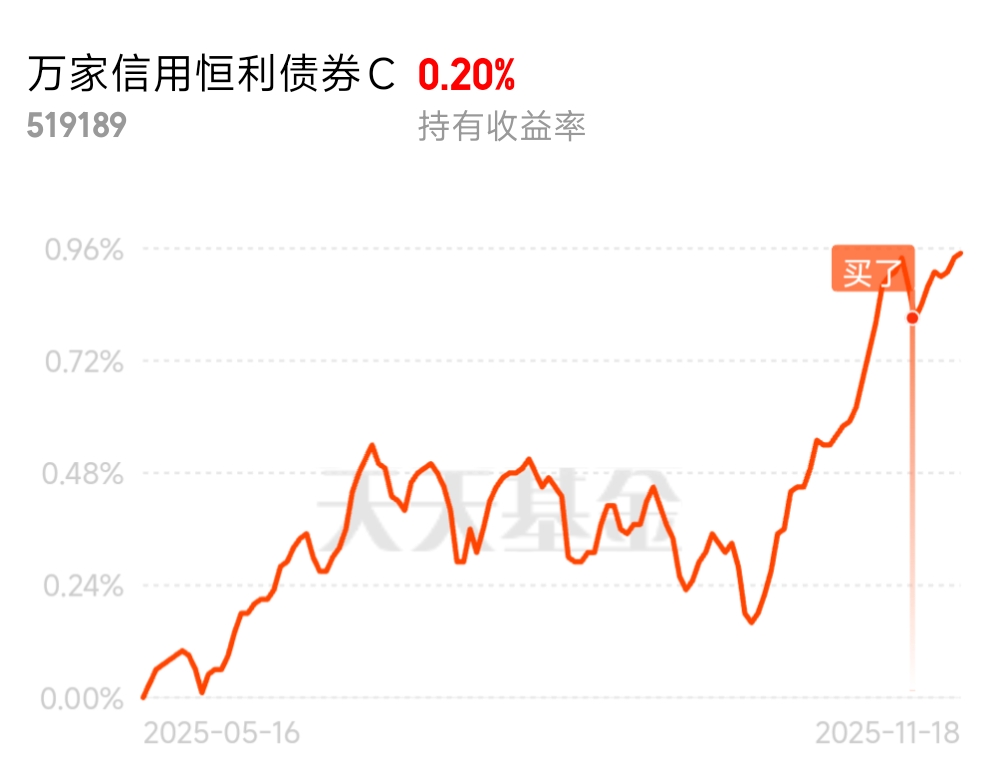 一直持有的万家信用恒利债券C,趋势是真的向上走,没让人失望~