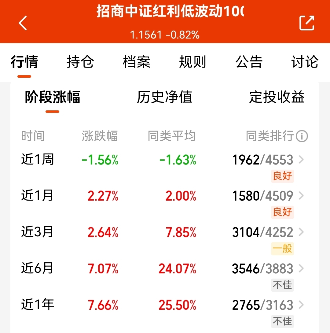 这支$招商中证红利低波动100指数发起式C$ 跟踪红利板块,今天也开始反弹了,近1个月收益2.29%,相对科技板块,我觉得还是比较抗跌的;