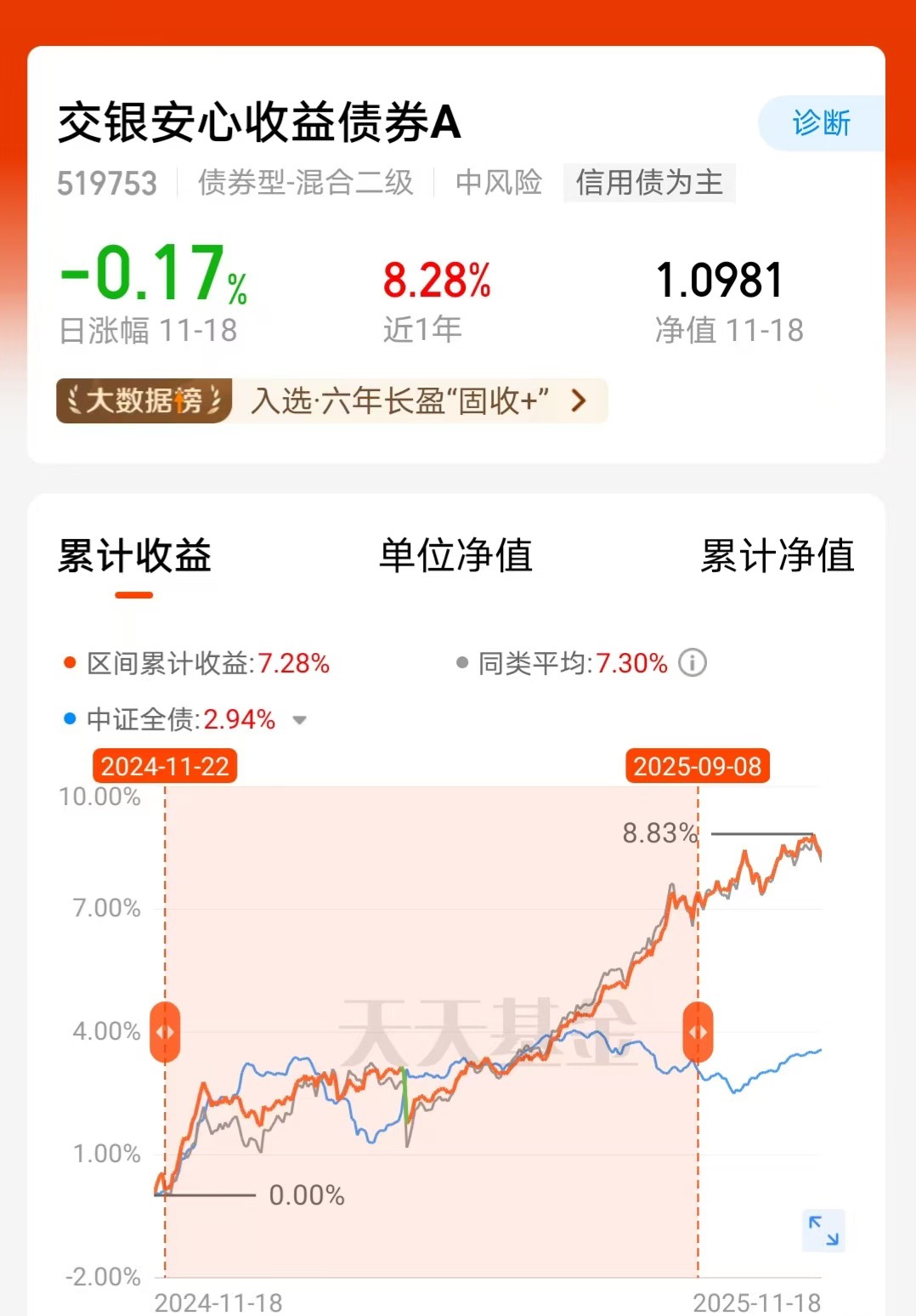看财经新闻说信用债市场最近挺稳当,顺手翻到交银安心收益债券A的业绩图,好家伙近一