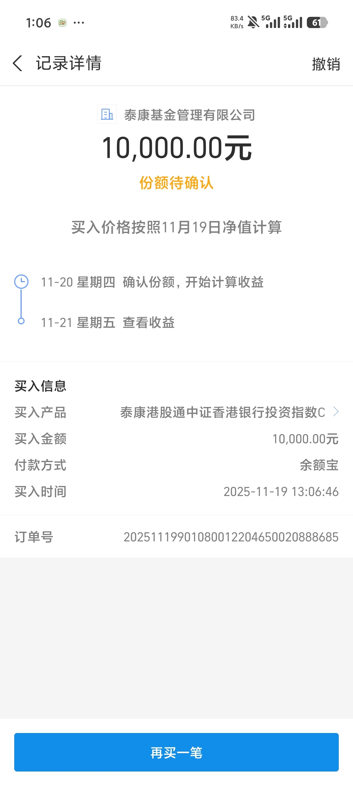 连续四天回调,昨夜美股纳指继续回调超1%,市场对于科技股高估值依然担忧,风偏持续回落,资金风格继续维持避险,我今天拿1w$泰康香港银行指数C$ ,