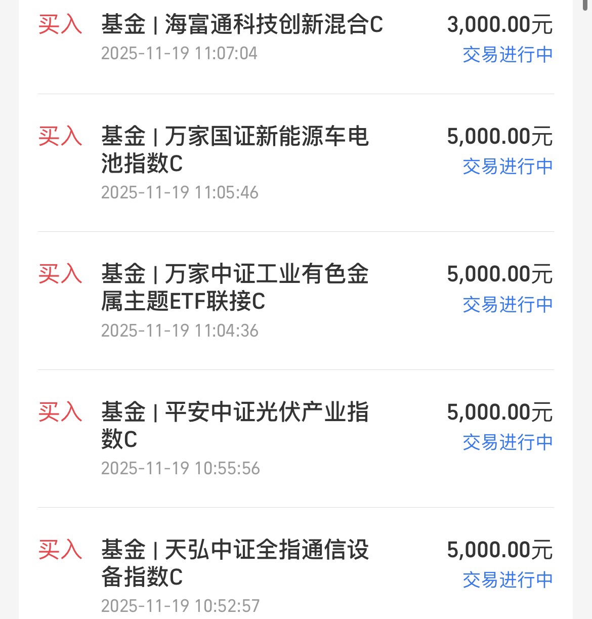 操作之前,今天我追加一次通信设备,上车5000,$天弘中证全指通信设备指数发起C$ 基金专注通信产业ETF,今天上涨了0.98%,个人追加一次,一方面,这一波通信设备高位调整达到15%了,挤出了泡沫,筹码变得相对便宜,个人趁着企稳回升机会逢低加仓,另一方面,从业绩上来看通讯设备表现出色,近一年还有82%收益率,在科技细分领域排名前列(数据来自蚂蚁财富,截至11月17日)