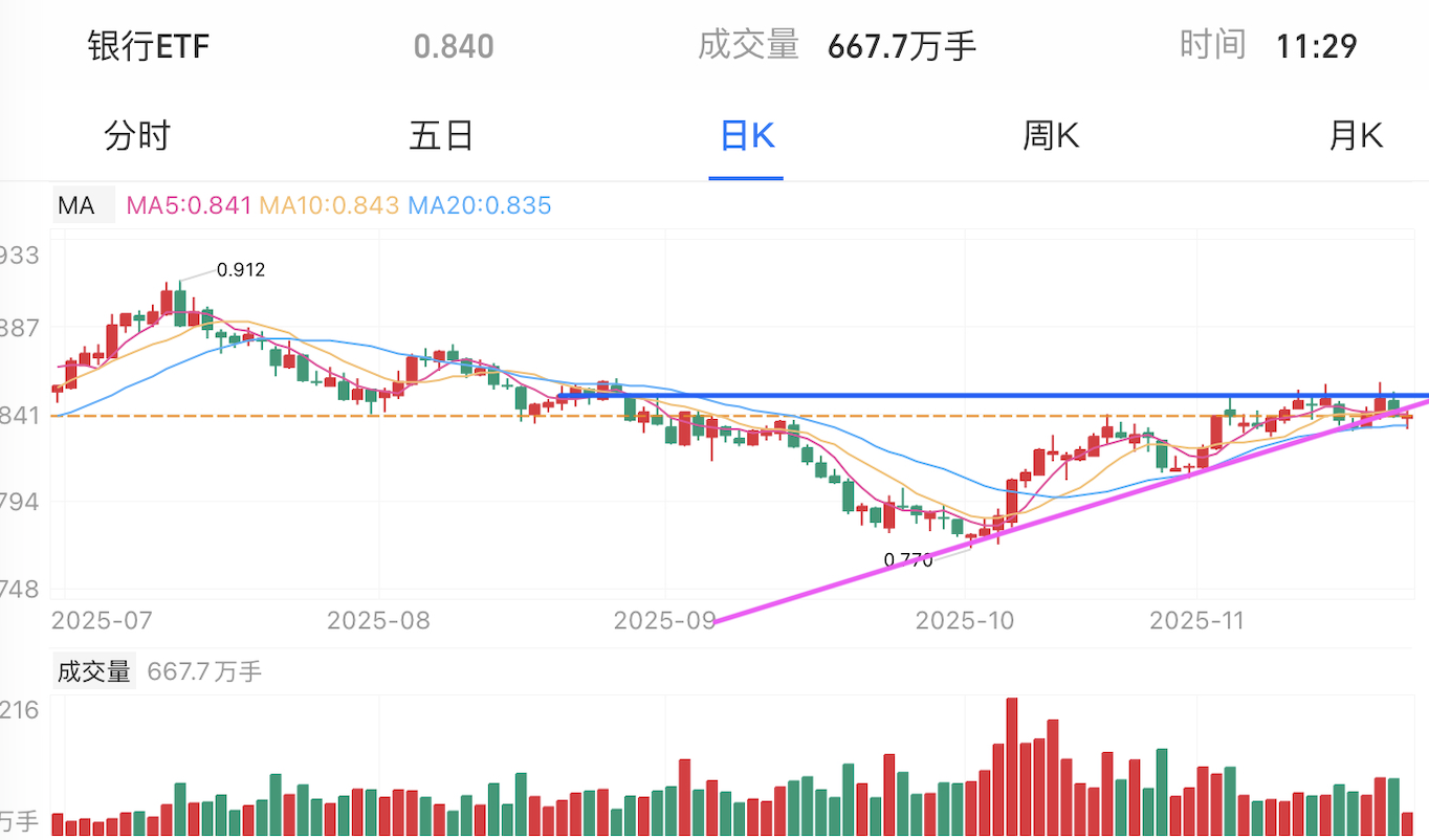 银行:近期出现反弹,但整体动力有限,价格在中位区间横盘。整体表现相对稳健,但后续方向仍待观察。