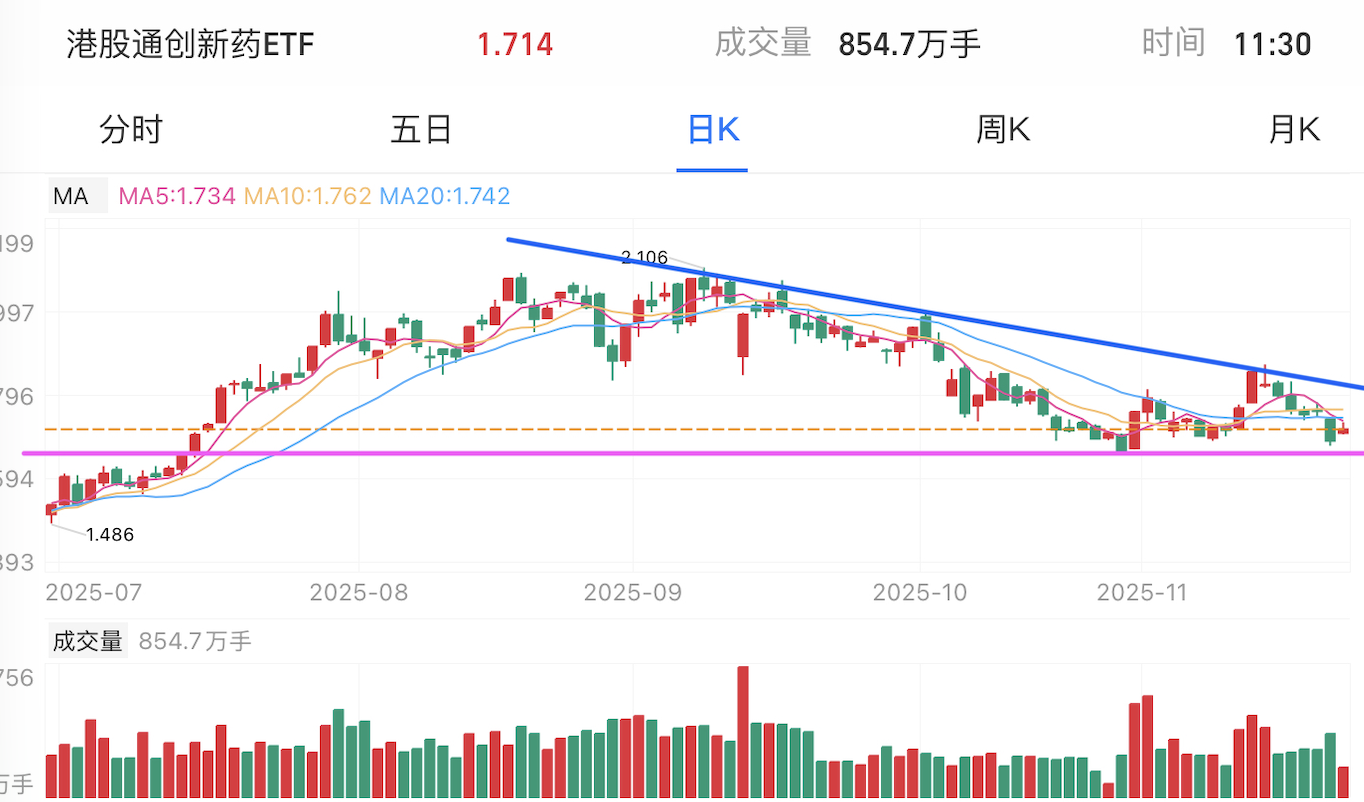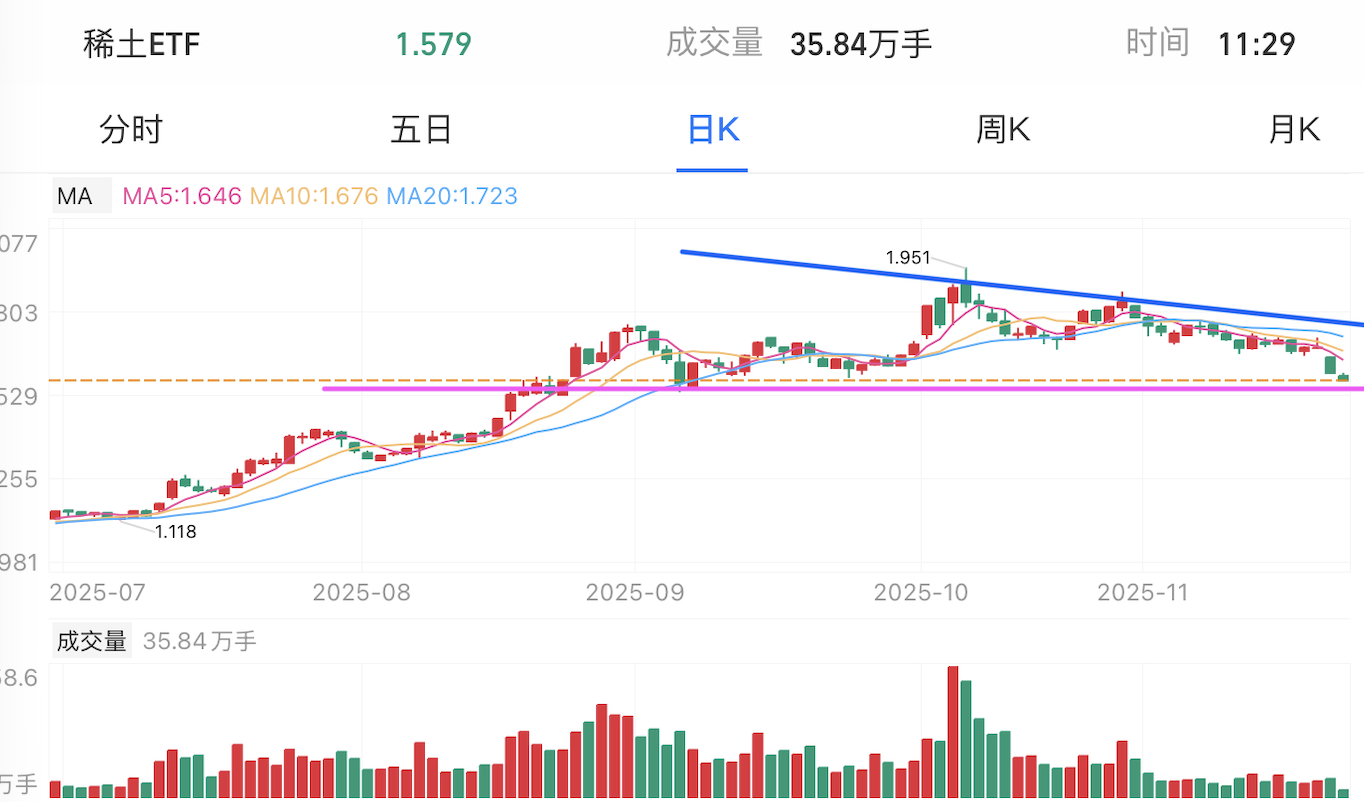 稀土、科创芯片:曾有阶段性行情,但最终跌破上涨趋势线,短期走势转弱。当前靠近前低支撑位,若失守则下行空间进一步打开。