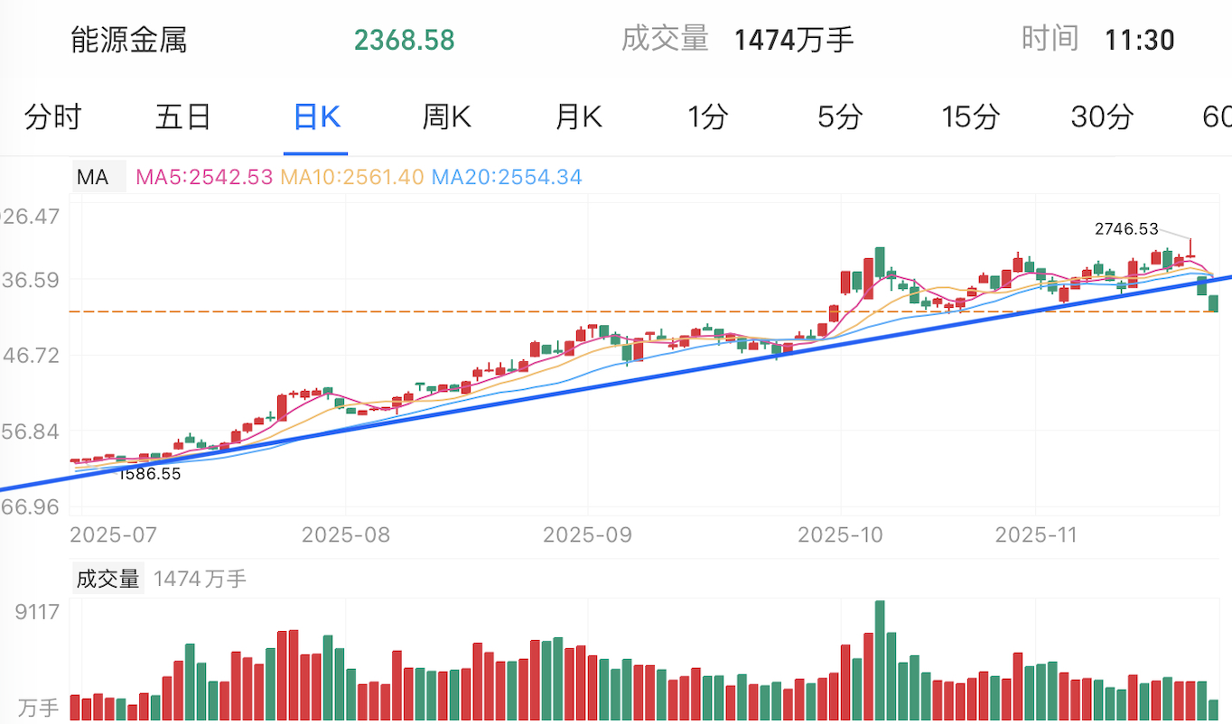 能源金属:此前也是市场热点,但近期连续下跌,跌破关键趋势线及前低支撑位。短期走势转弱。