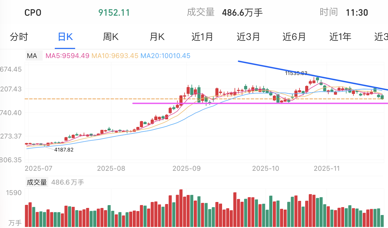 白酒:长期处于底部震荡,近期窄幅波动。支撑位较稳固,但上行动力不足,目前仍在中长期趋势线附近徘徊。