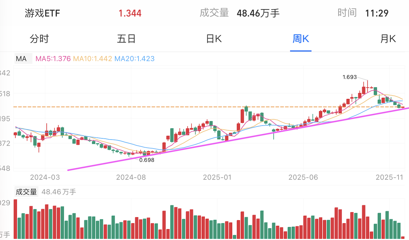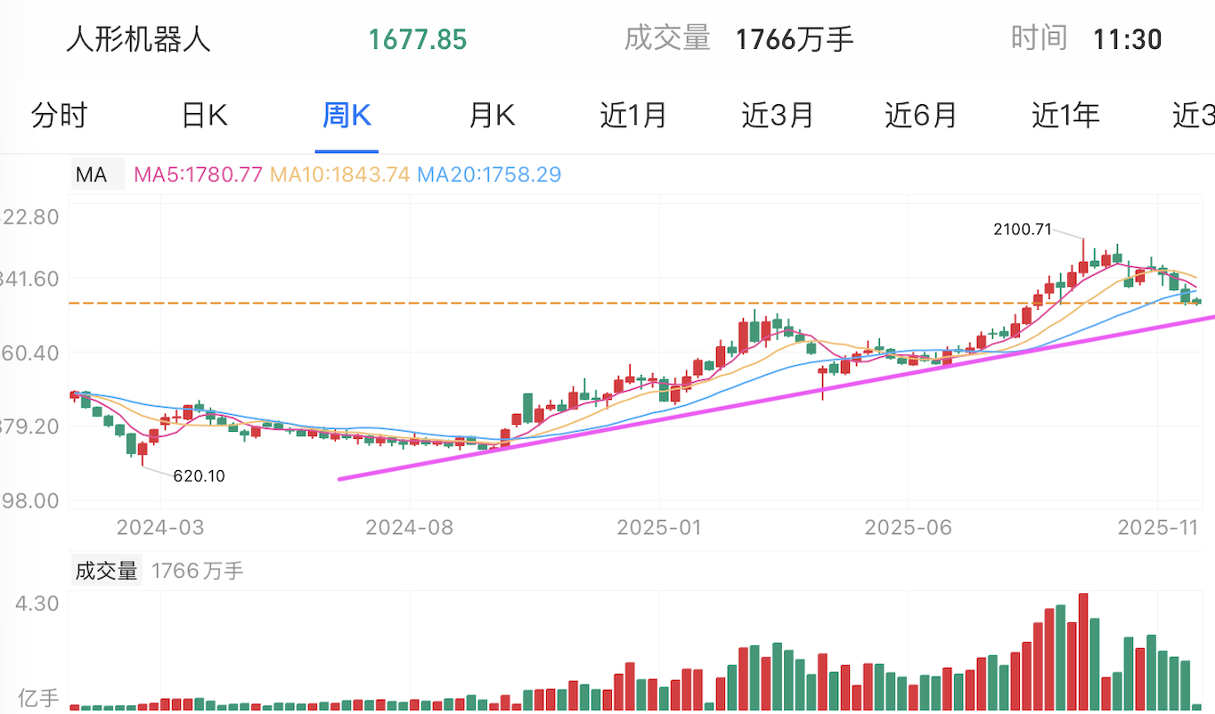 人形机器人、游戏:前期表现突出,但近期出现回调,短期走势偏弱。当前已逼近中长期趋势线,若跌破则可能进入更深调整。