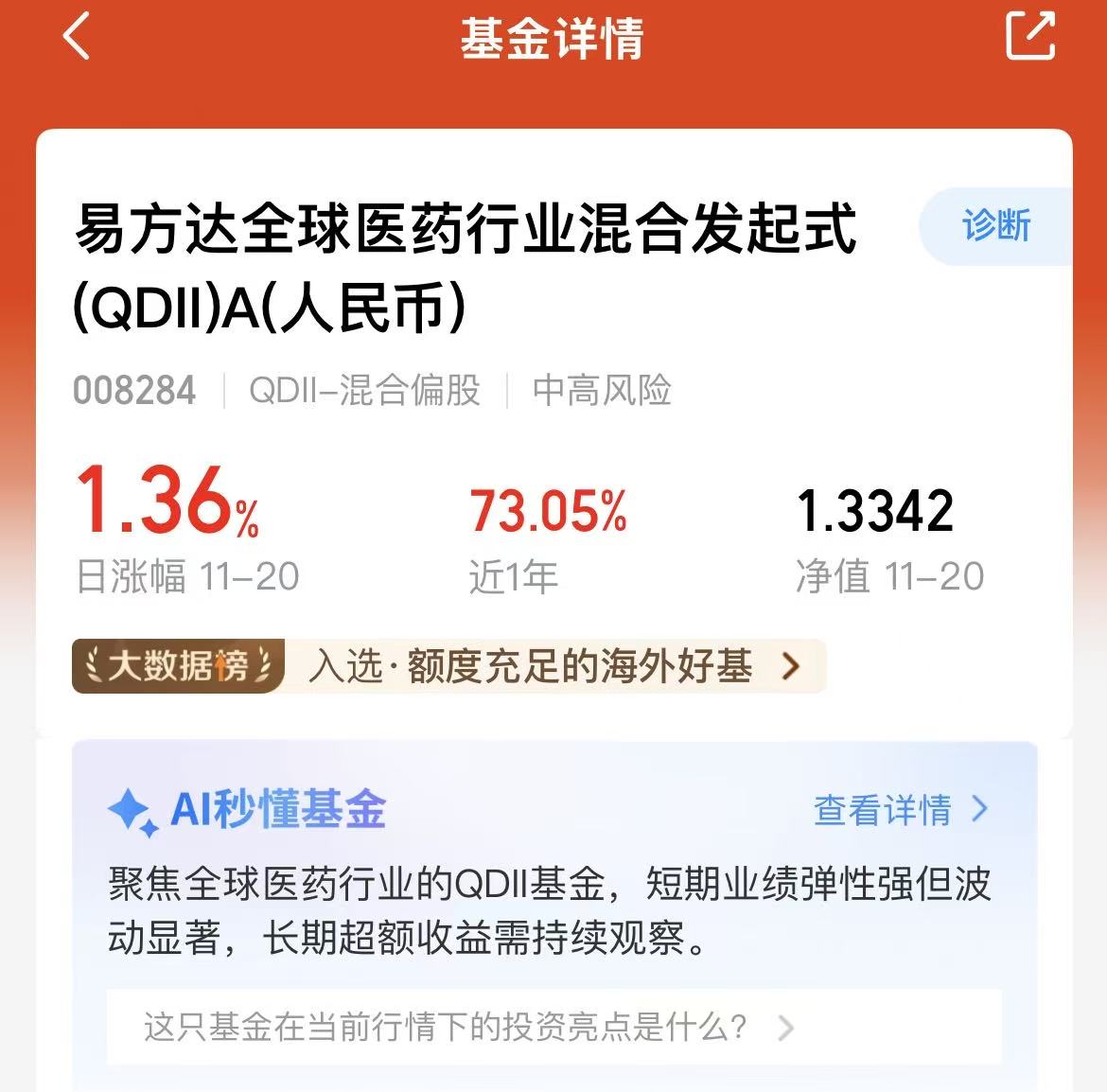 今天大盘高开震荡,尾盘三大指数均收涨了,港股这边科技板块迎来回暖,今天的医药板块表现也还不错,眼下医药行业老龄化刚需,创新药、医疗器械等增长确定性强,前景不错的呢。易方达全球医药行业混合发发起式A持仓聚焦医药核心赛道,全球灵活配置,年化收益率73.05%,长期业绩出色,我也打算布局起来!#3800点的A股值得加仓吗?# #今年买基金赚了多少钱?# $易方达恒生科技ETF联接(QDII)C(OTCFUND|013309)$