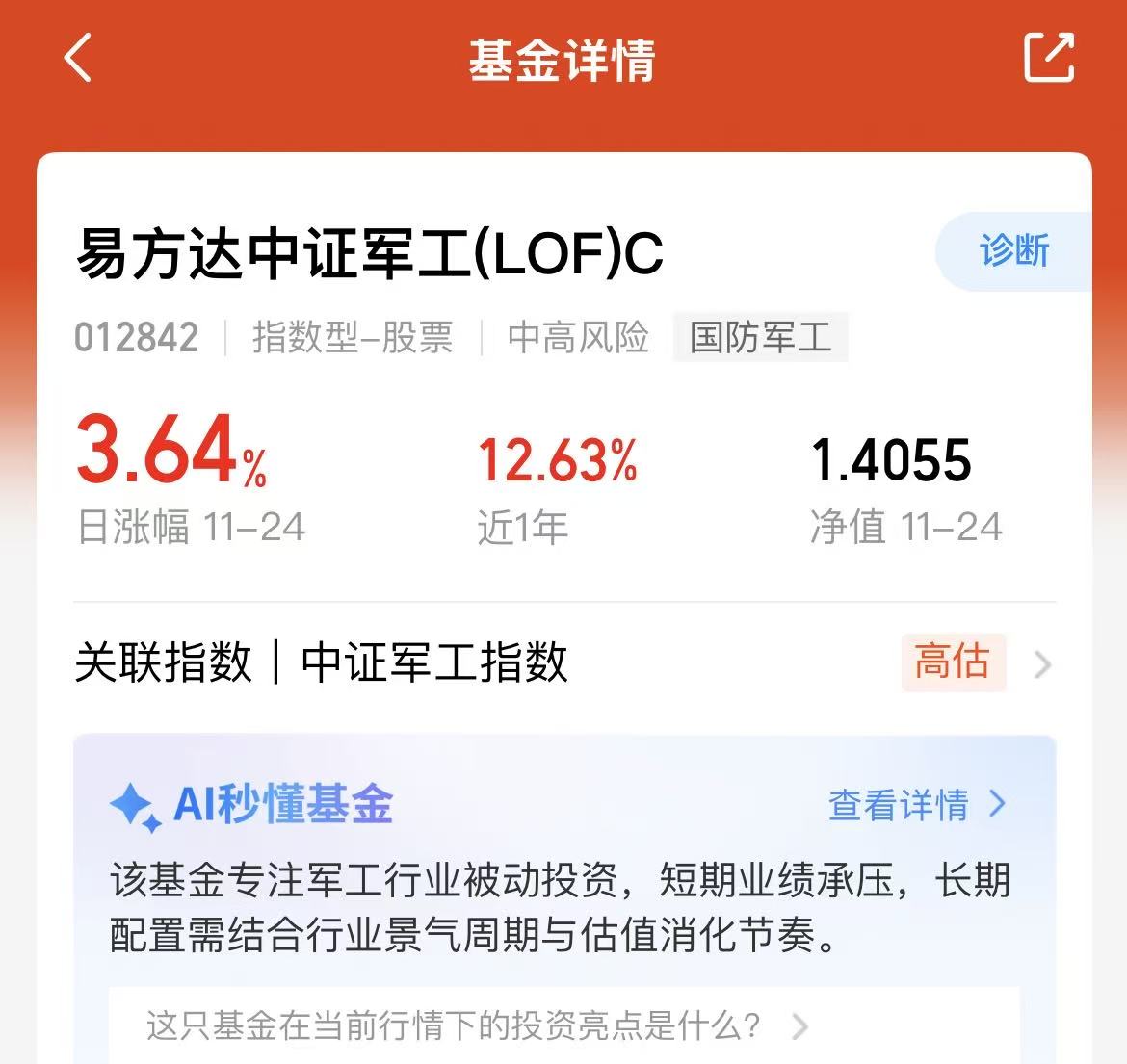 今天A股三大指数均收涨了,终于迎来不错的反弹呢,军工方向涨幅不错,当下军工行情进入双驱动阶段了,国防预算年增7.2%,新质生产力、低空经济等政策聚焦军工智能化、无人机装备,军工方向还有一定的发展空间呢。易方达中证军工C今天更新上涨3.65%,这是聚焦军工核心赛道的,近一年收益率12.63%,我是长期看好的呢。#军工板块活跃!机构:行业或迎业绩拐点#$鹏华空天军工指数(LOF)C(OTCFUND|010364)$ $博时军工主题股票A(OTCFUND|004698)$