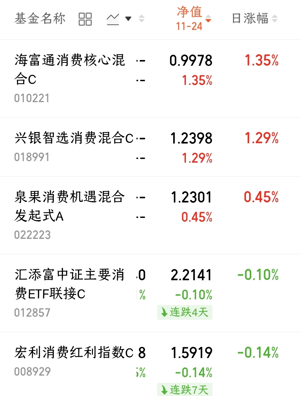 消费基净值播报!