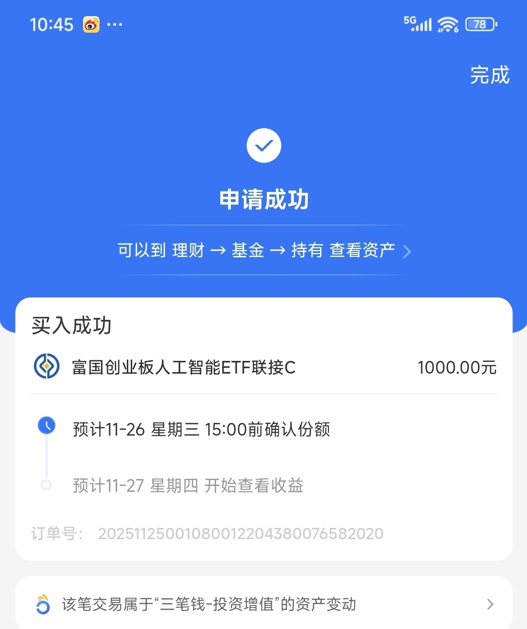 今天A股3大指数估值集体大涨,创业板指数估值涨幅超2%,英英今天继续补仓$富国创业板人工智能ETF发起式联接C$ ,这几天调整,位置很低了,从市场消息来看,近期政策层面不断释放积极信号,对新兴产业的支持力度持续加大。人工智能作为引领未来的战略性技术,受到了政策的高度关注和扶持。这不仅为人工智能行业的发展提供了广阔的空间,也为相关主题基金的成长奠定了坚实的基础。创业板作为创新型企业的重要聚集地,汇聚了众多人工智能领域的优质企业,其指数的上涨反映了市场对该板块未来发展的乐观预期