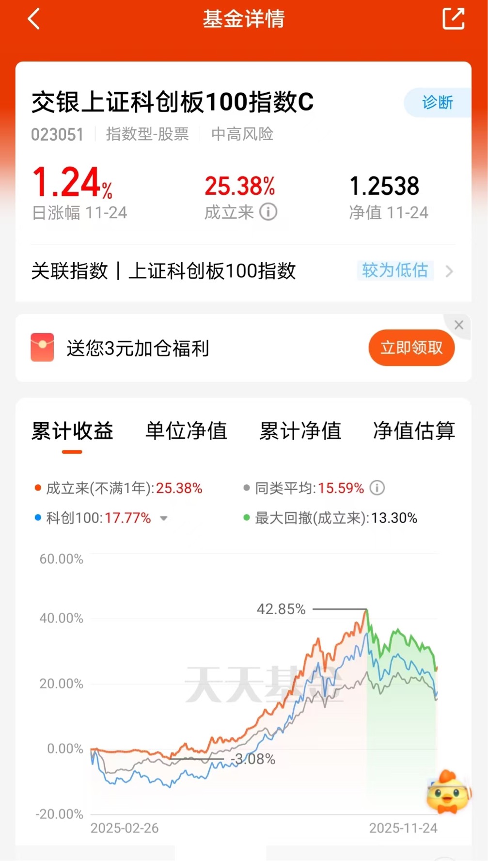 最近科技圈不是老说半导体国产替代嘛,我看科创板那些搞芯片、智能制造的公司在政策暖风里跑得挺欢。正好注意到有个基金布局这个赛道,近一年居然涨了25.38%,单位净值都蹦到1.2538了!昨天大盘震荡它还坚挺地涨了1.24%,这表现确实比科创100指数和同类平均亮眼——感觉像班里那个闷声考第一的学霸,不吭不哈但成绩单特别唬人。虽然科技股波动大像坐过山车,但这类企业技术护城河深、成长天花板高,通过指数化方式参与,相当于把鸡蛋放进代表未来趋势的篮子里。我个人觉得,这种跟着国家战略走的赛道,长期来看或许比追涨杀跌更让人睡得着觉,毕竟科技进步这事儿,总得有人当“时间的朋友”嘛$东财龙头家电指数C$ 还行$融通创业板指数C$ 继续保持$华宝沪港深价值指数C$ 不错