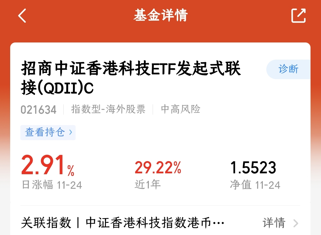 昨天大盘高开震荡,探底回升,港股那边表现更是亮眼。$招商中证香港科技ETF发起式联接(QDII)C(OTCFUND|021634)$昨日上涨了2.91%,真不错啊,市场信心显著提振。与此同时,美联储降息预期升温,进一步推动港股表现向好。资金流入预期增强,科技板块受益明显,带动整体收益增长。当前环境下,港股上升空间持续扩大,我还是比较看好后续走势的。短期内利好因素叠加,有望延续当前上涨势头,提前上车了!