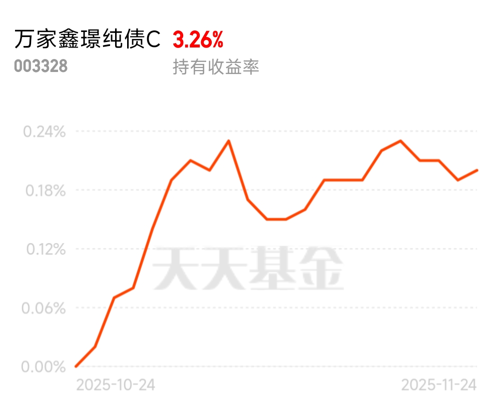我在#今年买基金赚了多少钱?# 选择了“稳步盈利!收益 10%-50%” 不论何时稳稳创收都离不开资产合理配置,像短期回笼或者底层配置需求我也会放到债基!毕竟安全感更好!$万家鑫璟纯债C$