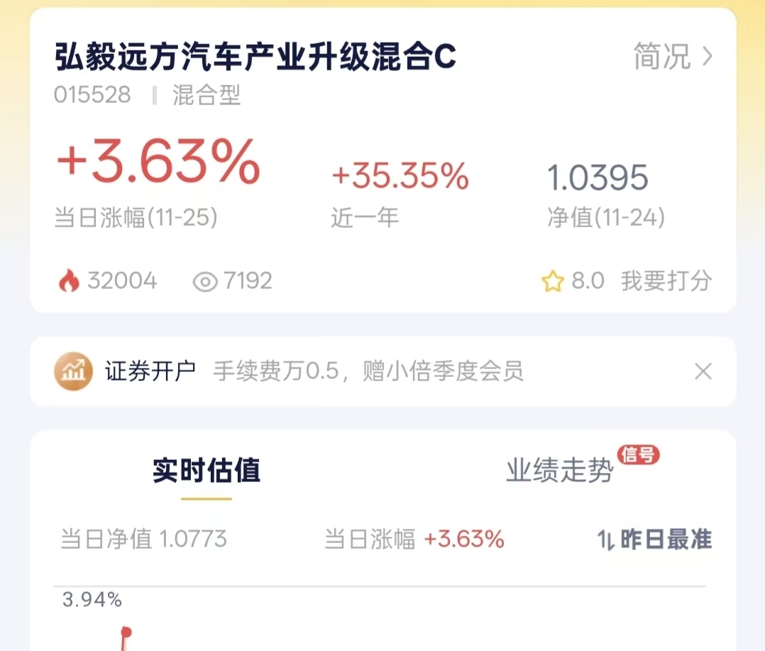 我超看好弘毅远方汽车产业升级C,它专注国产算力,近1年收益35.35%太亮眼,芯片全产业链+头部车企订单王双重加持。今日算力板块强势反弹,市场调整结束要起飞,估值飙升3%,政策发钱、华为AI突破、车企爆单三重Buff叠满,国产GPU自主化爆发,AI和自动驾驶催生万亿刚需,这波黄金坑我继续冲,长期趋势超棒。