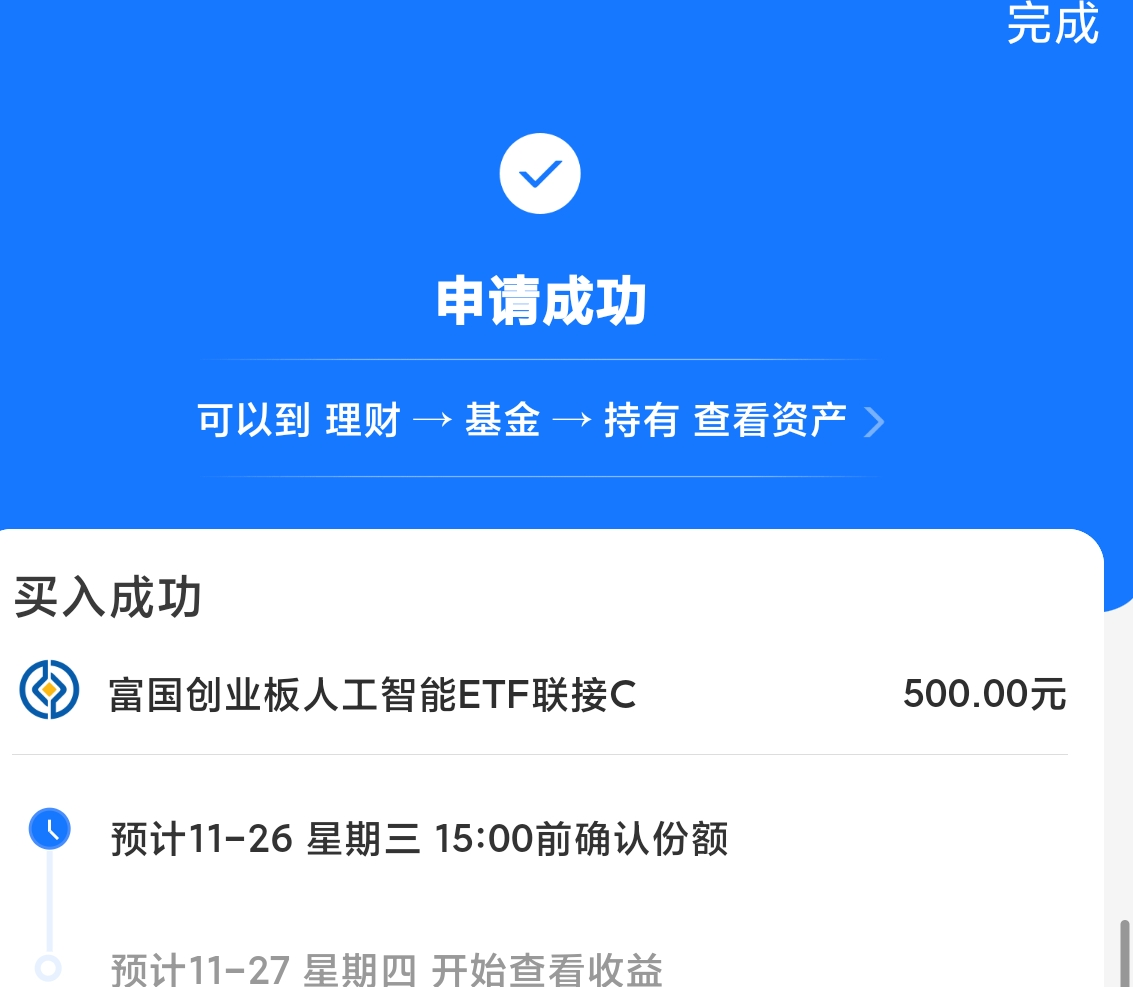 终于!今天市场发起大反攻,个人顺势加仓500元的$富国创业板人工智能ETF发起式