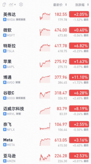 【重仓涨跌】昨日华宝纳斯达克精选前十大重仓股集体收涨,美元兑人民币中间价↓0.04%。(重仓股涨跌情况仅供参考,不代表当前基金业绩表现,还请以每日更新的实际基金净值为准)