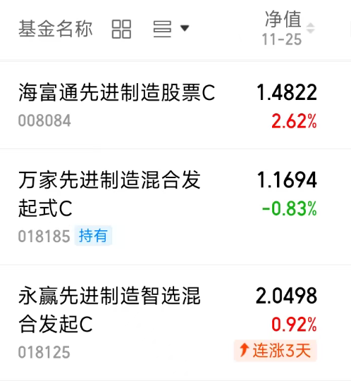 $海富通先进制造股票C(OTCFUND|008084)$+2.62%,涨幅居前