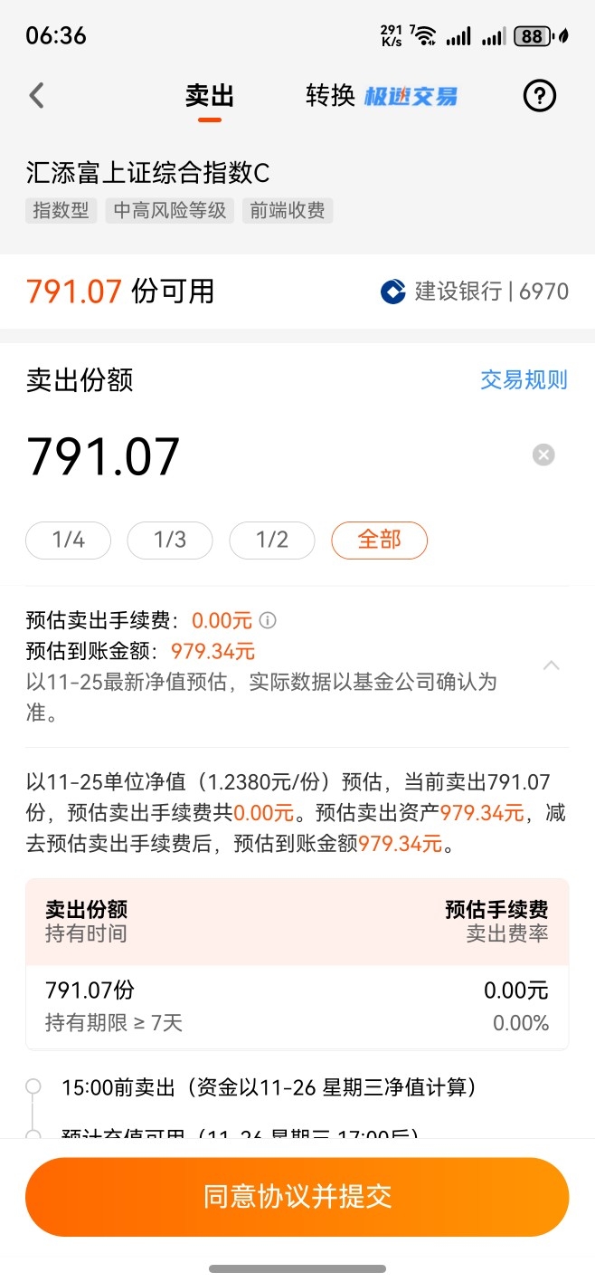 在今天早上,观察目前持有的某个上证综合指数基金剩余九百多这点持续份额,在今天也刚好够7天了。