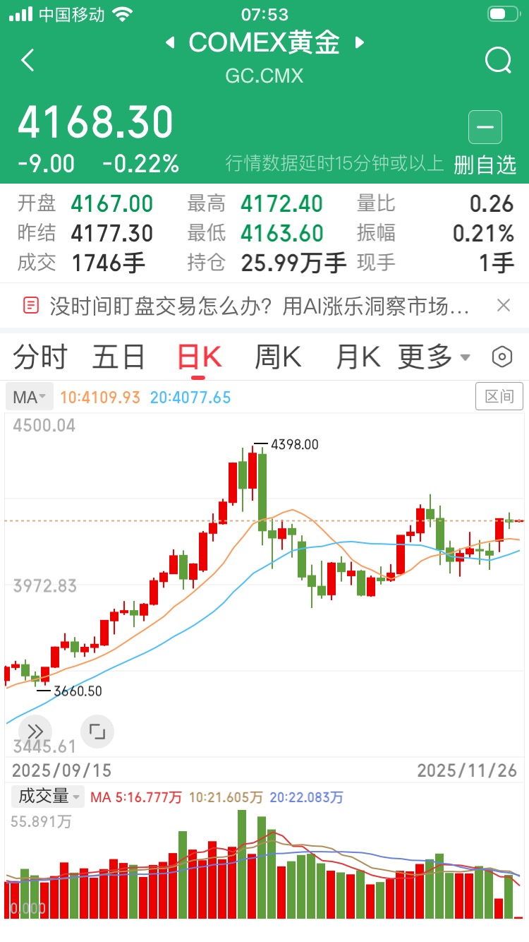 25日夜间,黄金上涨0.78%,白银上涨1.5%,ICE布油下跌1.23%。