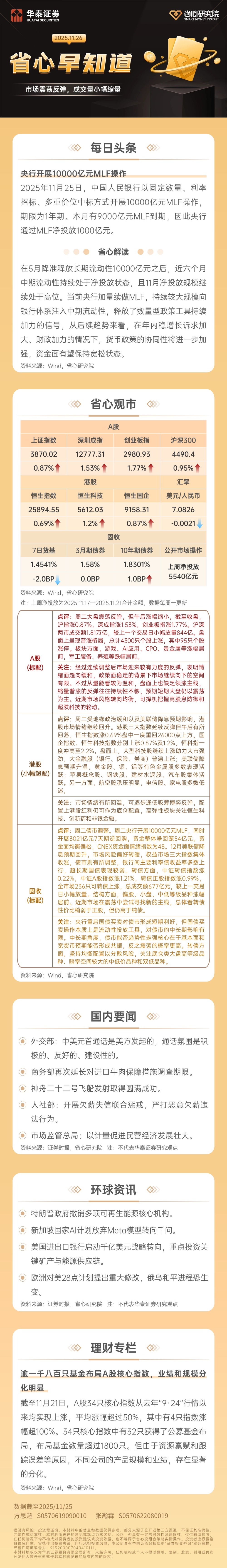 1126省心早知道——市场震荡反弹,成交量小幅缩量