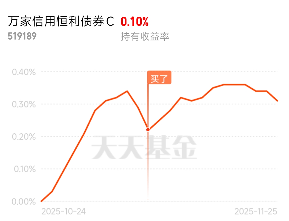 身边朋友都在吐槽股市震荡亏收益,我持有的万家信用恒利债券C却稳稳赚钱,后续还会持续关注