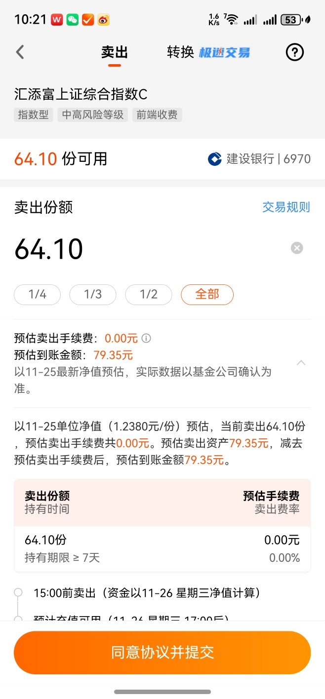 在今天。已经考虑选择把目前持有的某个上证综合指数基金剩余一点持有份额资金,在今天
