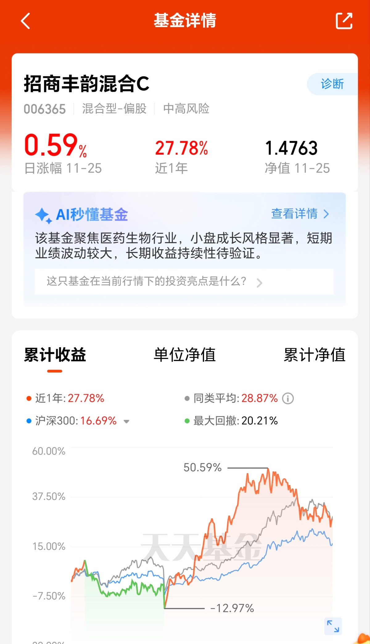 近期创新药板块整体回暖明显,今日更是连续上涨三天,这波行情主要由于当前流感高发,从而推动了医药板块热度持续飙升,而我留意的$招商丰韵混合C(OTCFUND|006365)$目前实时估值更是大涨3%,而从基本面来看,医药的长期成长逻辑仍在,政策面也在持续鼓励创新药研发投入不断加大,随着技术面的突破,创新药行情将会迎来进一步的上涨,而我也坚持看好这一赛道!