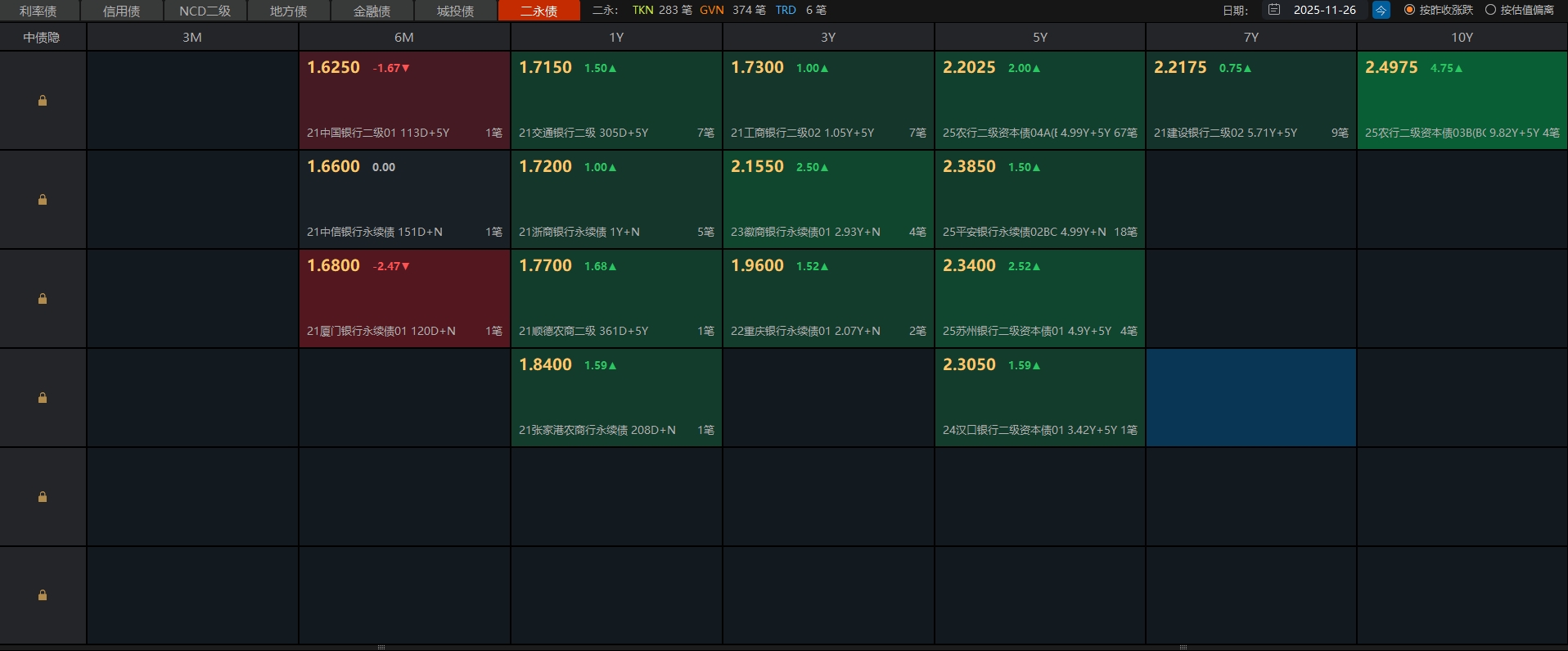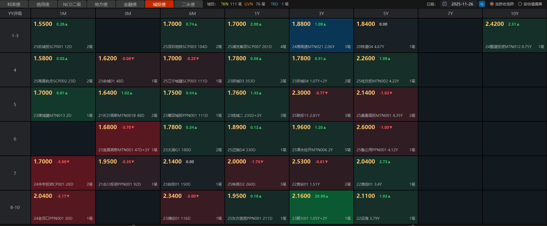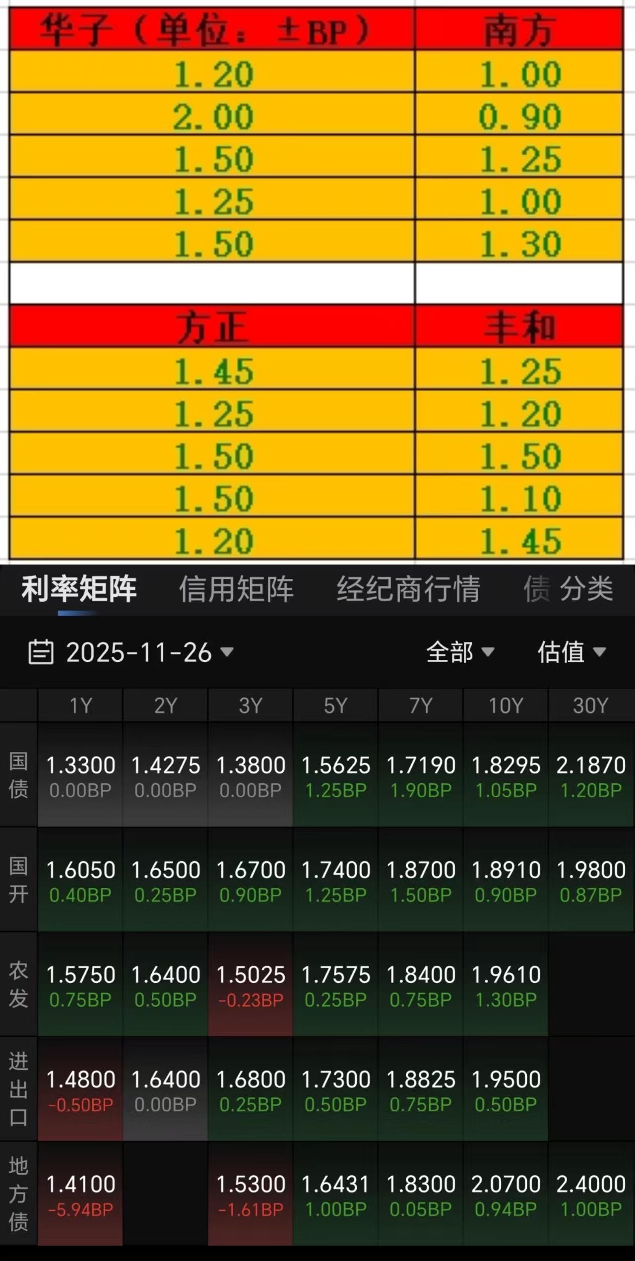 11月26日债市午间天气播报:上半场存在分歧,隔壁开盘有三千八百多家上涨,目前只有2819家上涨,2377家飘绿。可转债状态小震荡,大概碎蛋十几二十个。债市这边,超长期国债震荡幅度稍大,其余小震荡。低等级城投债相对稳一点,整体和昨天差别不大,个别收0个蛋;银行债偏弱,多数碎1-5个蛋,小部分碎蛋6+个。最近股债震荡都比较频繁,求稳的话,信用中短债的体验感会更好一些。午间情况:7-10年期碎蛋8-11个,超长期国债轻仓碎蛋24-29个(华子),重仓碎蛋28-35个(丰和<方正)。