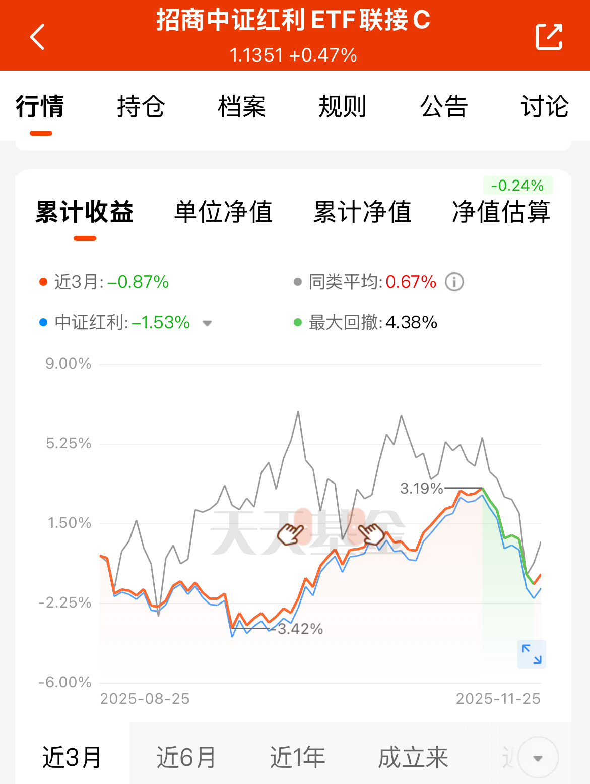 午后创指涨超3%,但是我的收益没多多少,明显的板块分化。再看红利,经历过调整,现在也有了黄金坑,$招商中证红利ETF联接C(OTCFUND|012644)$成分股是科技细分领域稳健龙头,既有分红托底抗跌,又沾行业成长光。科技波动的时候我打算配置一些做个压舱石。