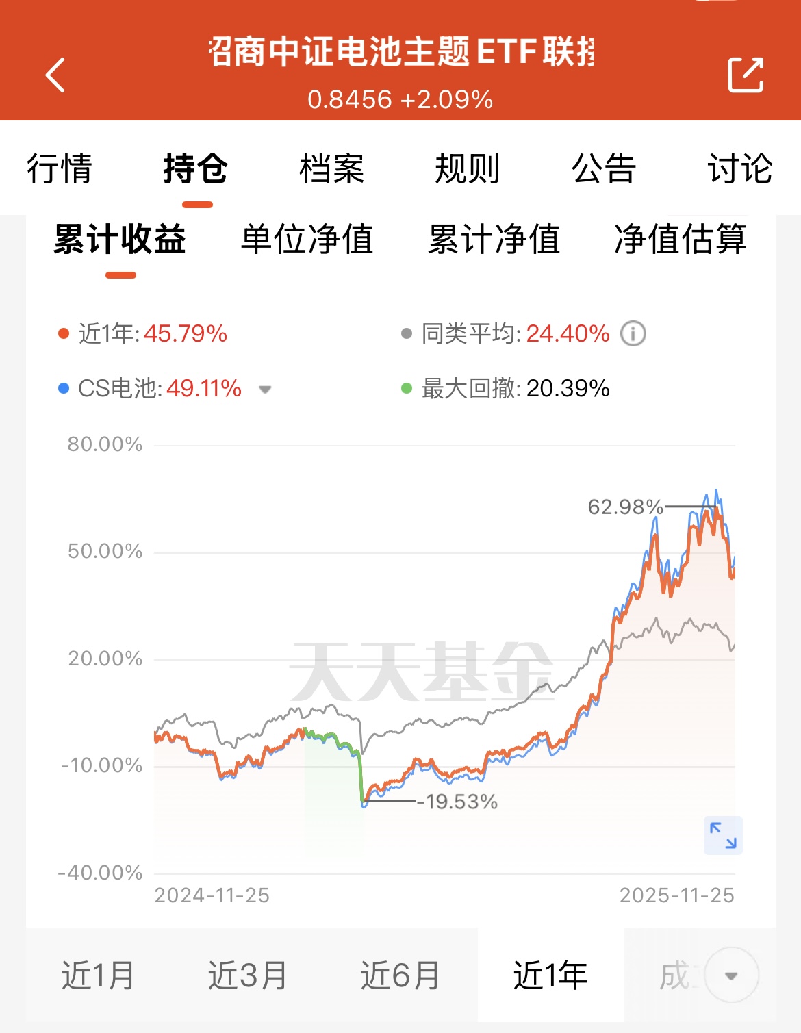 大盘高开高走,电池赛道又可以吃肉啦,“十五五”新型电池产业规划编制推进,储能装机目标落地,储能需求年增超50%、动力电池出口高增32.7%,电池赛道未来可期。$招商中证电池主题ETF联接C(OTCFUND|016020)$年化收益率45.79%,重仓有宁德时代、阳光电源等龙头,看好未来上涨趋势!$大成中证电池主题指数发起C(OTCFUND|015998)$#3800点的A股值得加仓吗?#