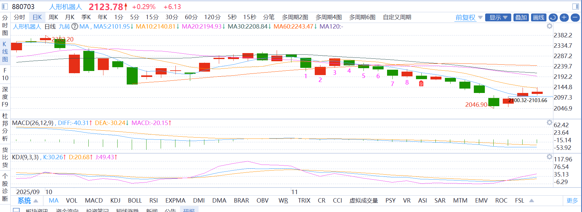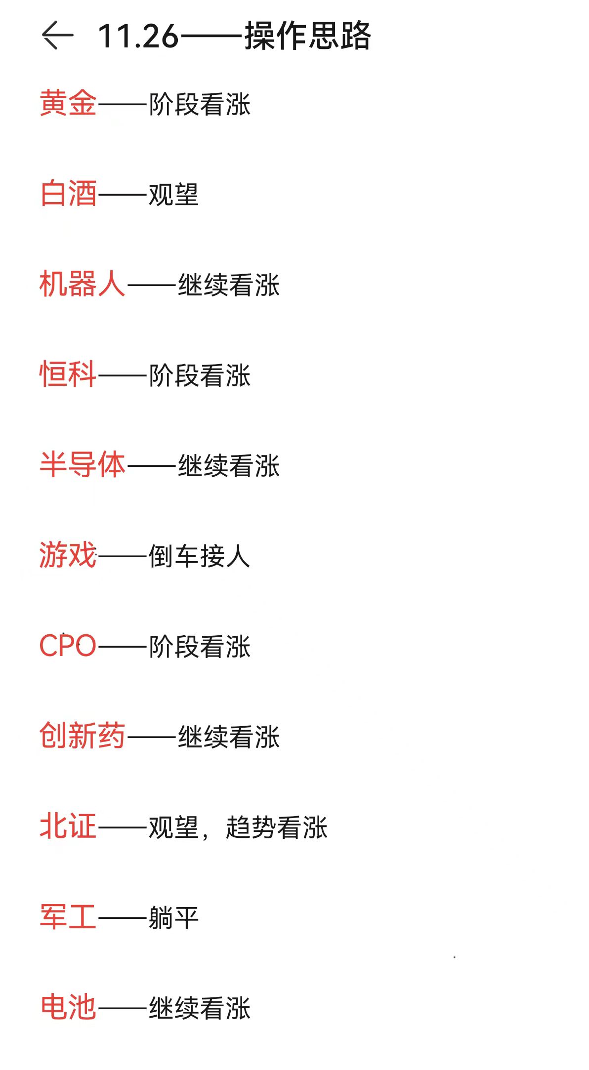机器人板块:板块延续上涨趋势,作为科技主线细分赛道,前期回调的比较充分,近期资金关注度持续提升,上涨动能充足。“十五五” 规划也是重点支持科技创新,机器人行业技术迭代加速,麦爸继续持仓看涨。