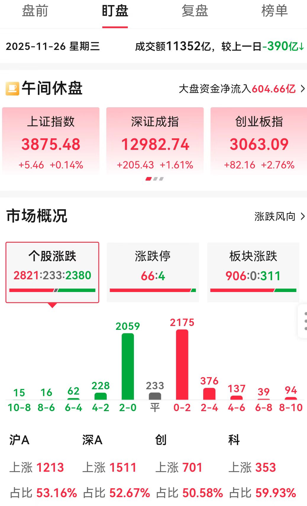 咱们A股今天也没让人失望,截止午盘,创业板指暴涨2.76%带头冲锋,医药、CPO概念集体狂欢,赚钱效应直接拉满,不过军工却逆势回落。