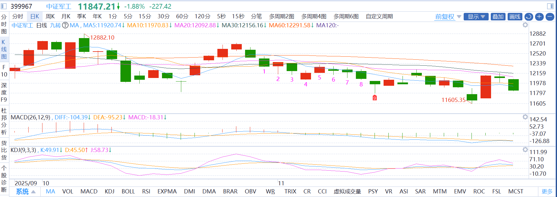 军工板块:今日领跌市场,船舶制造、航天航空等细分领域回调,短期处于调整阶段,并没有因为周一的大涨就改趋势,所以还是弱。麦爸延续“躺平”策略,选择不动。