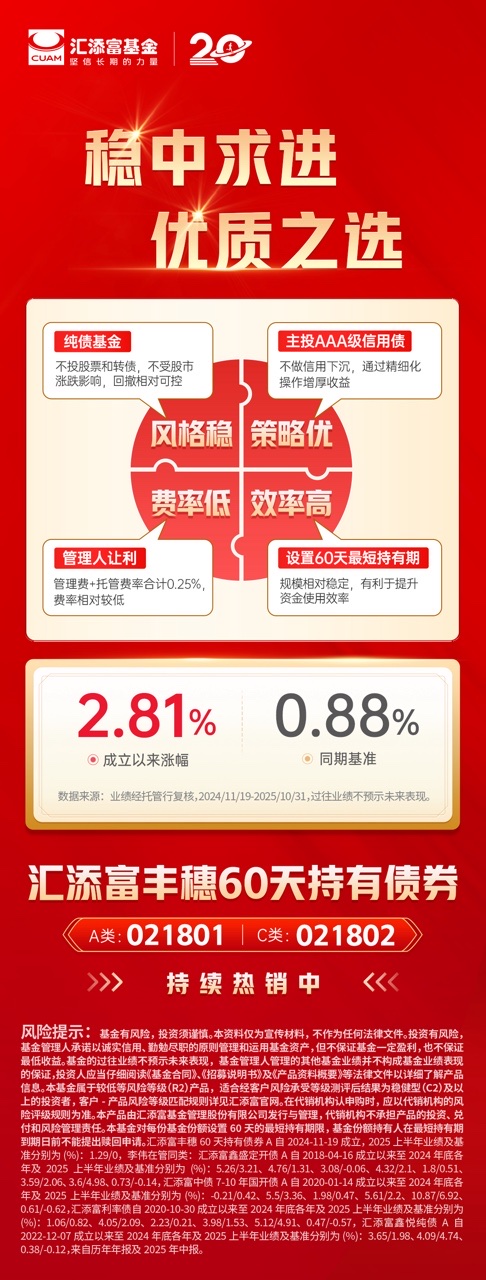 稳中求进,优质之选!欢迎关注汇添富丰穗60天!