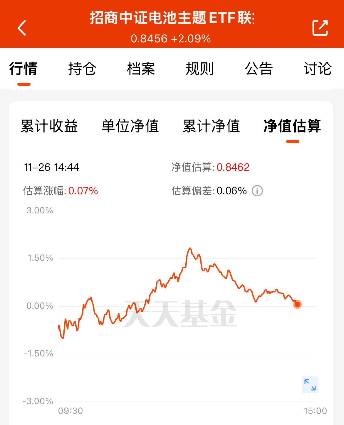 哎呀呀有点遗憾啊!今天$招商中证电池主题ETF联接C(OTCFUND|016020)$盘中涨1个点,午后跳水了,现在小红。昨天还看到主力大幅净流入,资金抢筹信号拉满,有拉升说明有资金,咱们先不慌。厦钨新能刚公告扩产千吨级硫化锂,27年建成对应近3GWh全固态电池,宁德时代也说27年有望小批量生产。产能这块没毛病。涨多了回调正常,我继续保持关注。