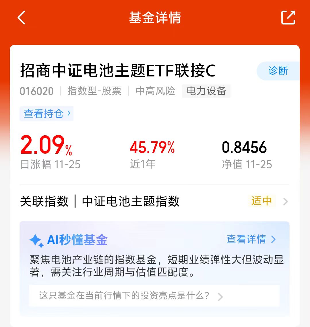 大盘今天继续上涨,电池板块表现还不错,$招商中证电池主题ETF联接C(OTCFUND|016020)$昨天涨了2.09%,今天预估涨0.32%,近六个月涨了62.65%,近期资金持续流入电池板块,长期来看电池板块发展空间还很大,长期看好这个方向,我准备分批布局了!