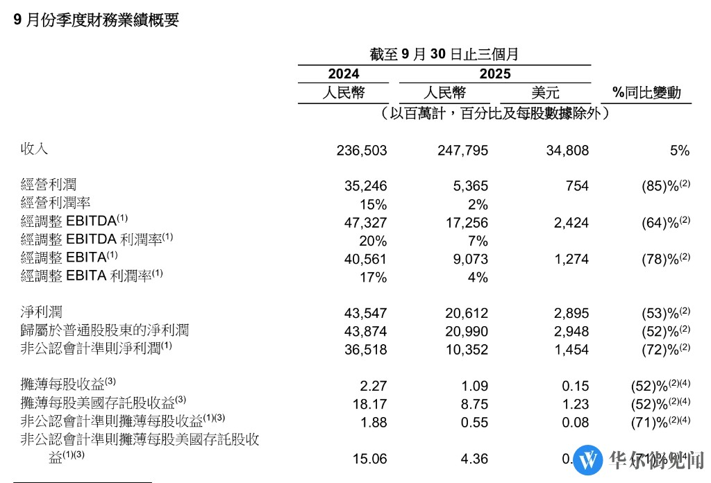 经营利润达到53.65亿元,同比大幅下降85%;净利润为206.12亿元,同比下降53%。