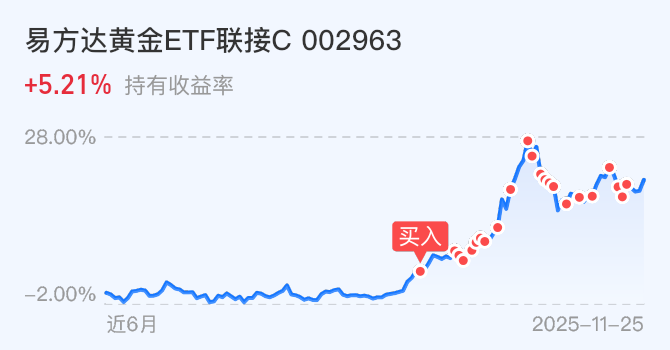 $易方达黄金ETF联接C$黄金当成长期持有标的,忽略短期的涨幅当下耐心持有为主,前期高点再做操作。