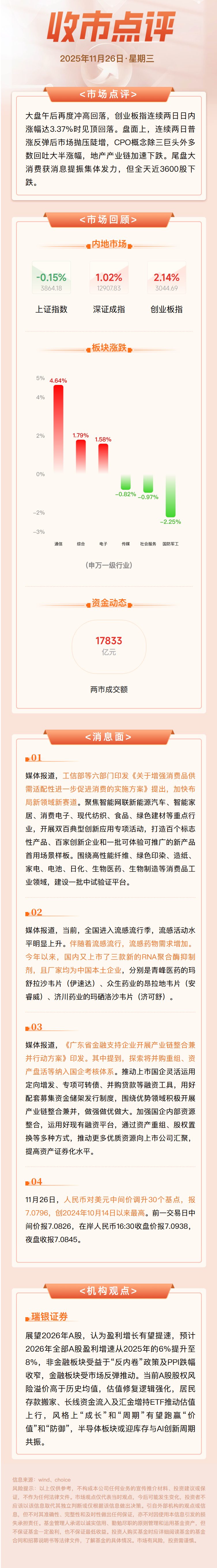 收市点评11.26 沪指冲高回落,大消费概念尾盘发力