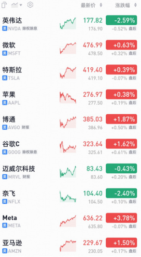 【重仓涨跌】昨日华宝纳斯达克精选前十大重仓股7涨3跌,美元兑人民币中间价↓0.03%。(重仓股涨跌情况仅供参考,不代表当前基金业绩表现,还请以每日更新的实际基金净值为准)