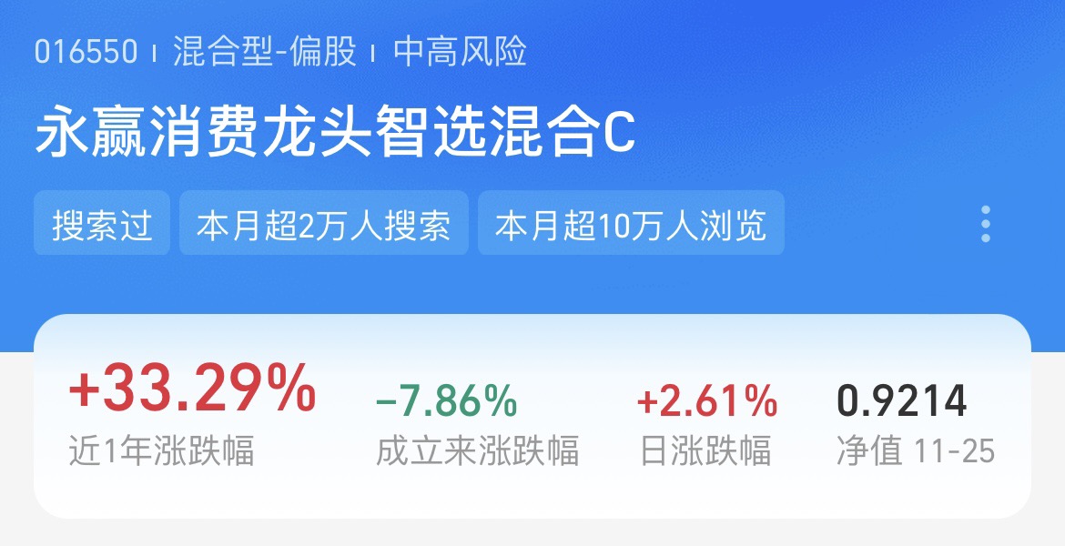 #流感药订单飙涨14倍 医药板块走强!# 哇塞!小赢家的消费龙头这两天有点东西 重点押AI传媒游戏赛道,还重仓了巨人网络这些游戏龙头和AI传媒产业链~ 连涨两天啦,看着数据蹭蹭往上走,心情也跟着飘起来 虽然不是啥大爆发,但这种稳稳的节奏还挺让人安心的~就像追剧看到喜欢的角色连赢两集,忍不住嘴角上扬 #AI传媒游戏 #消费龙头观察 #小赢家日常$永赢消费龙头智选混合发起C$