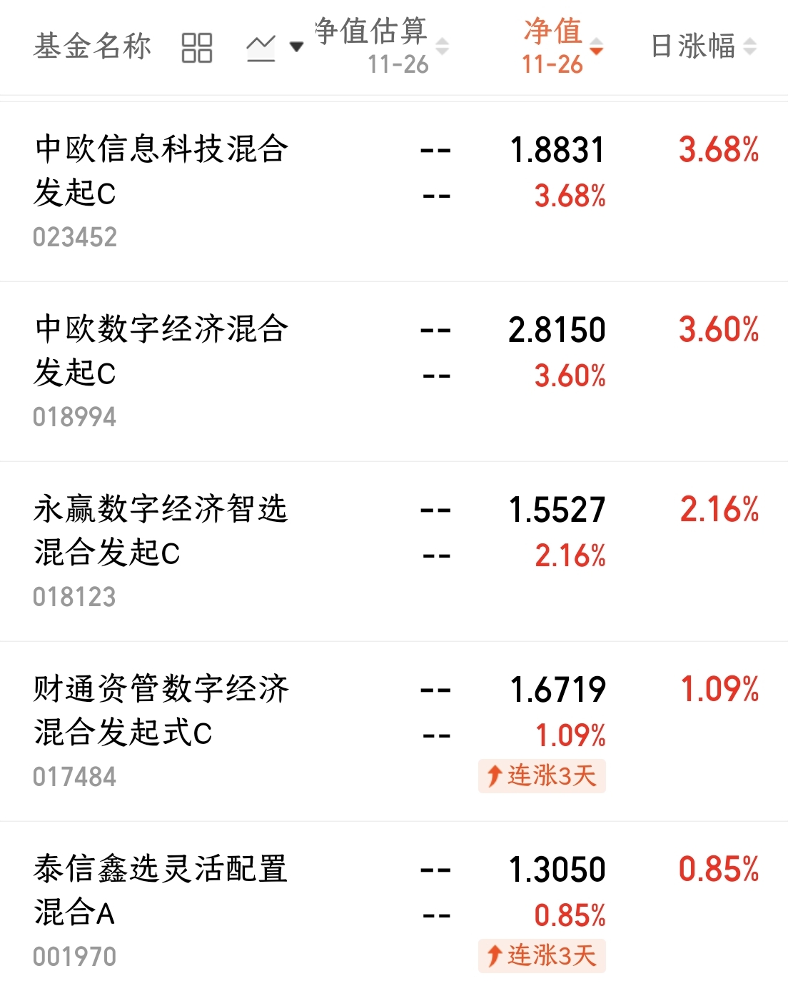 $财通资管数字经济混合发起式C(OTCFUND|017484)$今日上涨1.09%