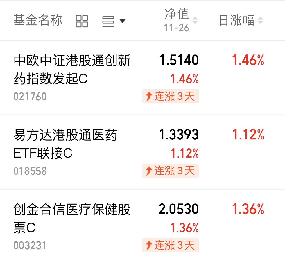 $易方达港股通医药ETF联接C(OTCFUND|018558)$今晚上涨1.12%