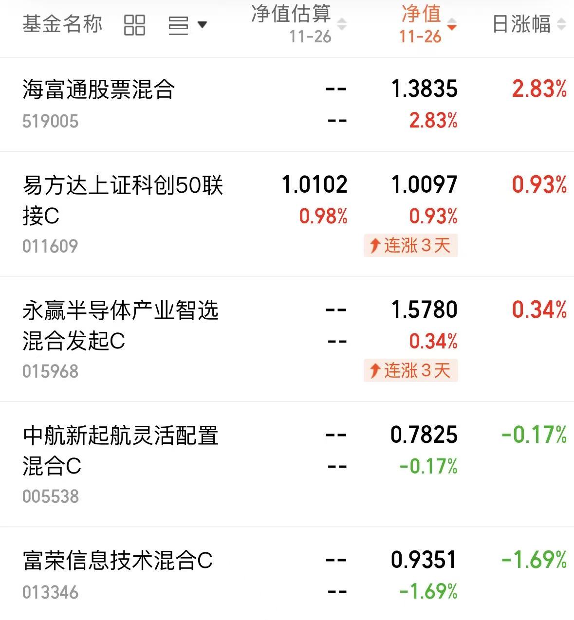 $易方达上证科创50联接C(OTCFUND|011609)$涨0.93%,红三天了