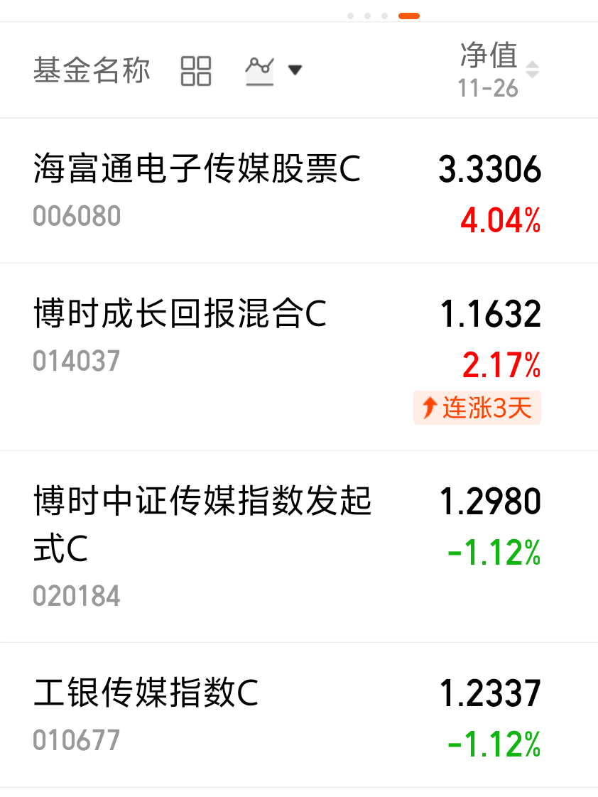 $海富通电子传媒股票C(OTCFUND|006080)$今天涨了4.04%