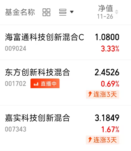 $海富通科技创新混合C(OTCFUND|009024)$+3.33%,涨幅居前